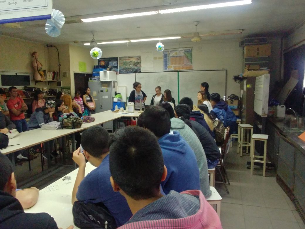 Este fue el primer encuentro de muchos, ya que ambos grupos continuarán trabajando juntos a lo largo del año, acompañados también por la Prof. Emma Spinedi. La propuesta es que nuestros estudiantes de la especialidad de Química puedan analizar las muestras de agua originaria del Riachuelo que ellos tienen para poder determinar si las balsas que utilizan para fitorremediar el agua de su estanque están remediándola y cuánto tardan en hacerlo, ya que tienen como proyecto utilizarla en su huerta hidropónica.